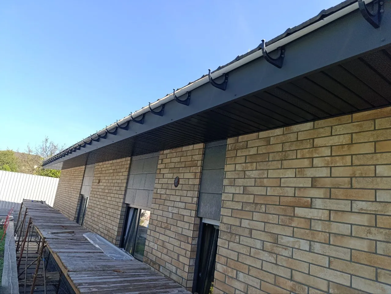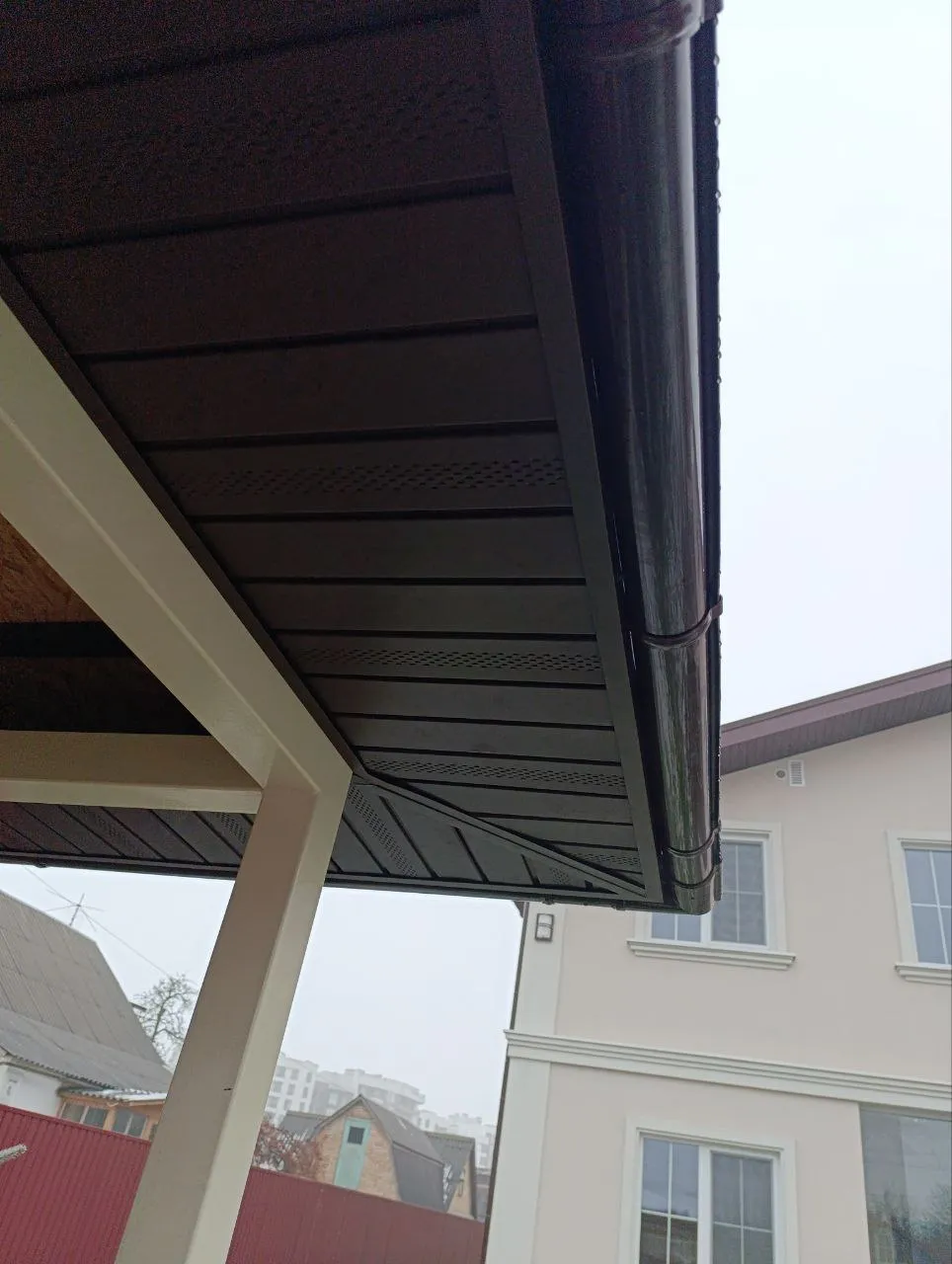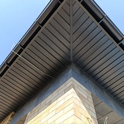 Встановлюємо водостоки, які ефективно відводять дощову воду. Робимо естетичну та надійну підшивку звісів для завершеного вигляду покрівлі. -